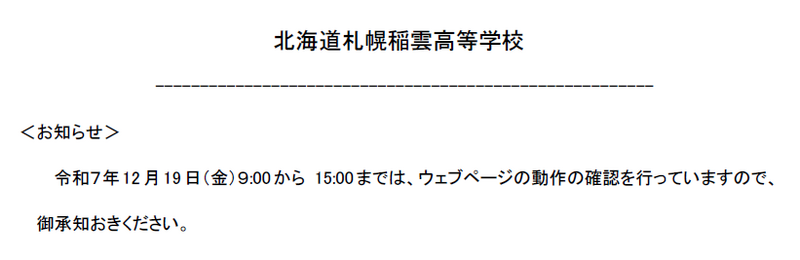 令和8年度(2026年度)北海道札幌稲雲高等学校 全日制課程 一般入学者選抜実施要項はこちらです。