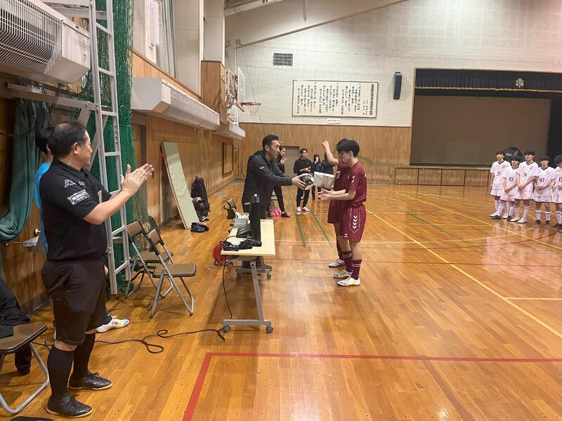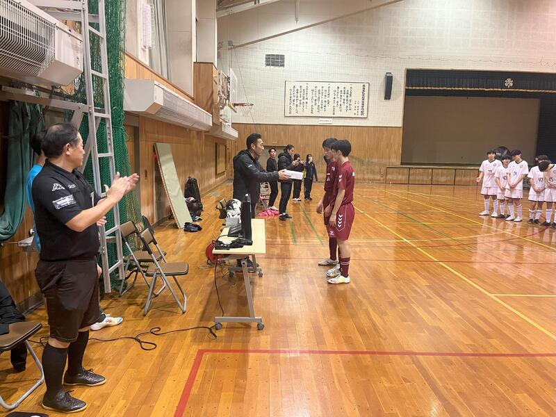 写真は、表彰式の様子になります。大会共催CEREZA様から賞品、協賛ダイワスポーツ株式会社様、株式会社ミカサ様からフットサルボールを提供していただきました。